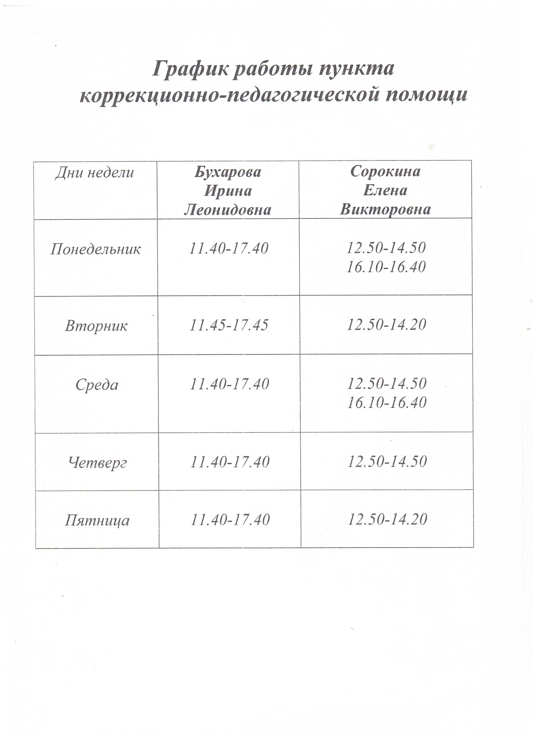 График работы пункта коррекционно-педагогической помощи на 1 полугодие 2024/2025 учебного года