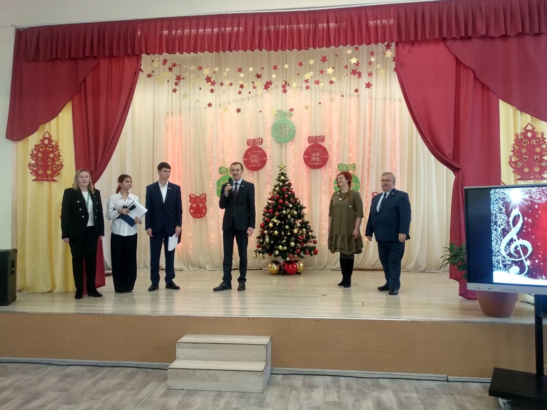 23 декабря 2025 года в актовом зале вновь собрались лучшие учащиеся школы. С заслуженными победами ребят поздравили: директор проектного института «Могилевгипрозем» Геннадий Георгиевич Барковский, председатель профсоюзной организации Инна Викторовна Лёвкина и заместитель председателя Могилевского областного комитета природных ресурсов и охраны окружающей среды Игорь Васильевич Бородько. На праздник они пришли не с пустыми руками, а со сладкими новогодними подарками, которые и вручили ребятам.