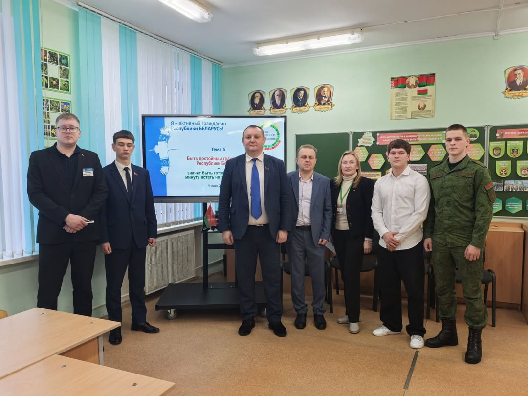 В качестве приглашенных гостей выступили Жудро Михаил Михайлович, ректор МГОИРО, заместитель председателя Могилевского областного Совета депутатов, первый секретарь Могилевского обкома КПБ, делегат VII ВНС, и Николаев Артем Витальевич, выпускник школы, курсант 4 курса военного факультета БГУИР, командир отделения, старший сержант.
