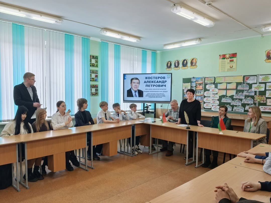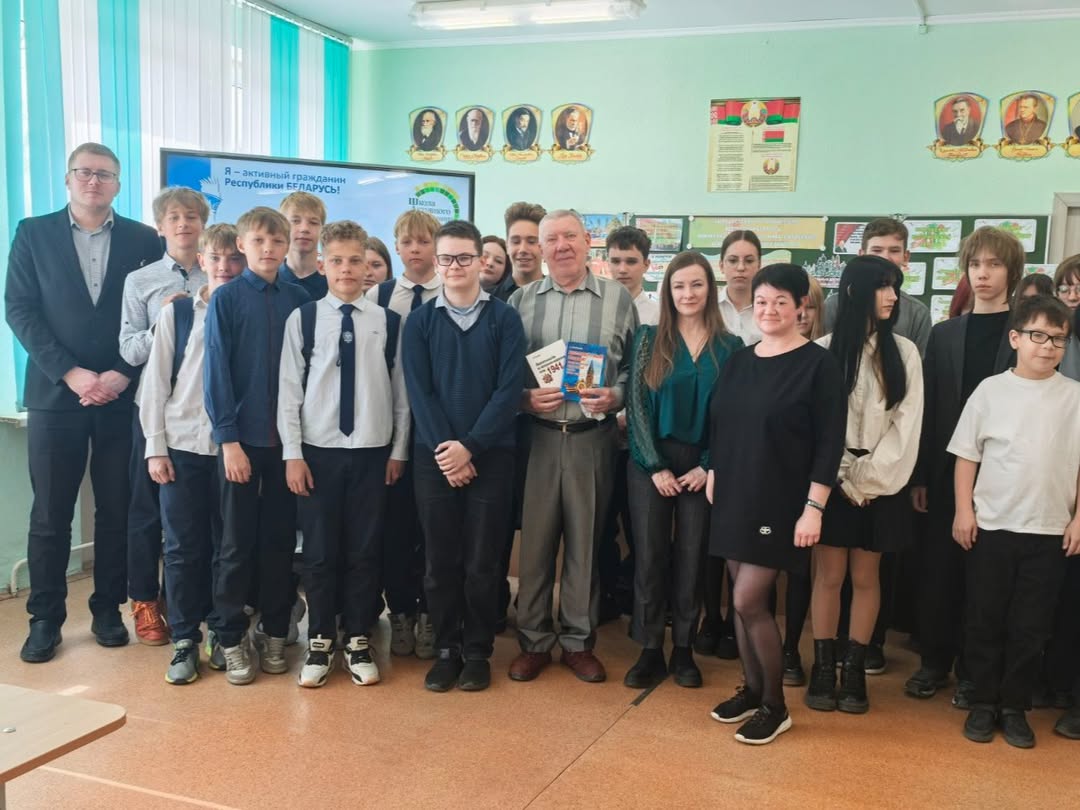 Встреча получилась по-настоящему значимой и глубокой по содержанию. Александр Петрович Костеров, чьи научные изыскания посвящены трагическим и героическим страницам начала Великой Отечественной войны, а также обороне Могилева, обратил внимание восьмиклассников на то, что истинное гражданство начинается с памяти. Он подчеркнул, что духовные ценности белорусского общества — это не абстрактные понятия, а конкретные исторические примеры мужества, стойкости и любви к родной земле, которые проявили наши предки. Гость рассказал о малоизвестных фактах обороны города, о том, как важно сохранять историческую правду и передавать ее из поколения в поколение, противопоставляя попыткам переписать историю.