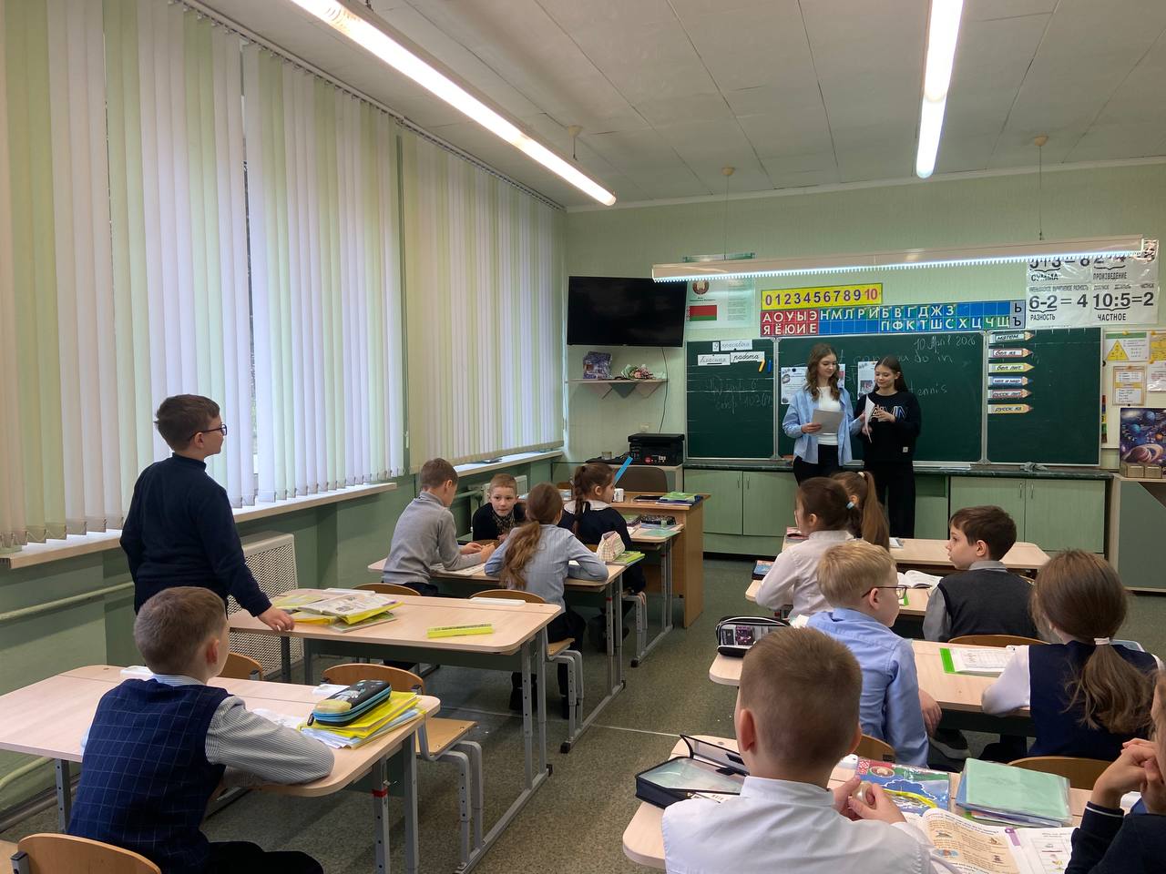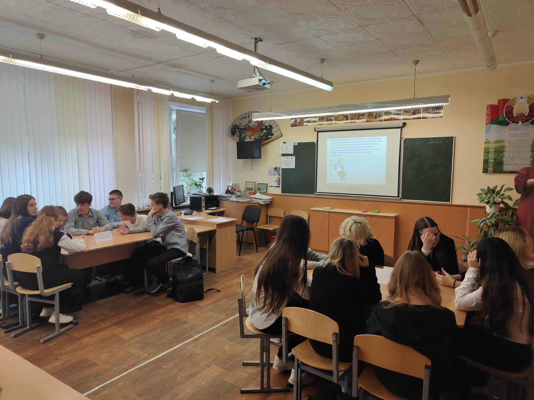 В рамках проекта “Равный обучает равного” учащиеся 9-х классов провели математическую викторину для учащихся 3-4 классов, учащиеся 10-х классов для 5-6 классов провели презентацию “Физика вокруг нас”.